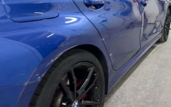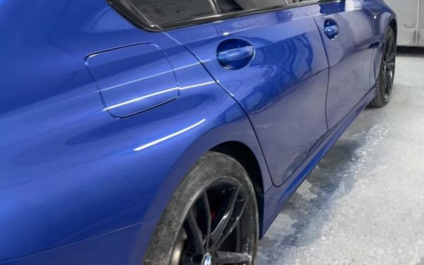 Deep rear side dent removed and refinished. OEM-compliant paint used for accurate match. Result: a clean, sharp restoration with no trace of the damage.